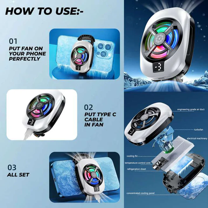 Introducing Indiaโs Mobile Gaming Cooler โ engineered for competitive gamers who demand performance. With advanced turbo-fan cooling and real-time temperature display, this RGB beast drops your phoneโs temperature in seconds โ preventing overheating and lag during intense sessions.